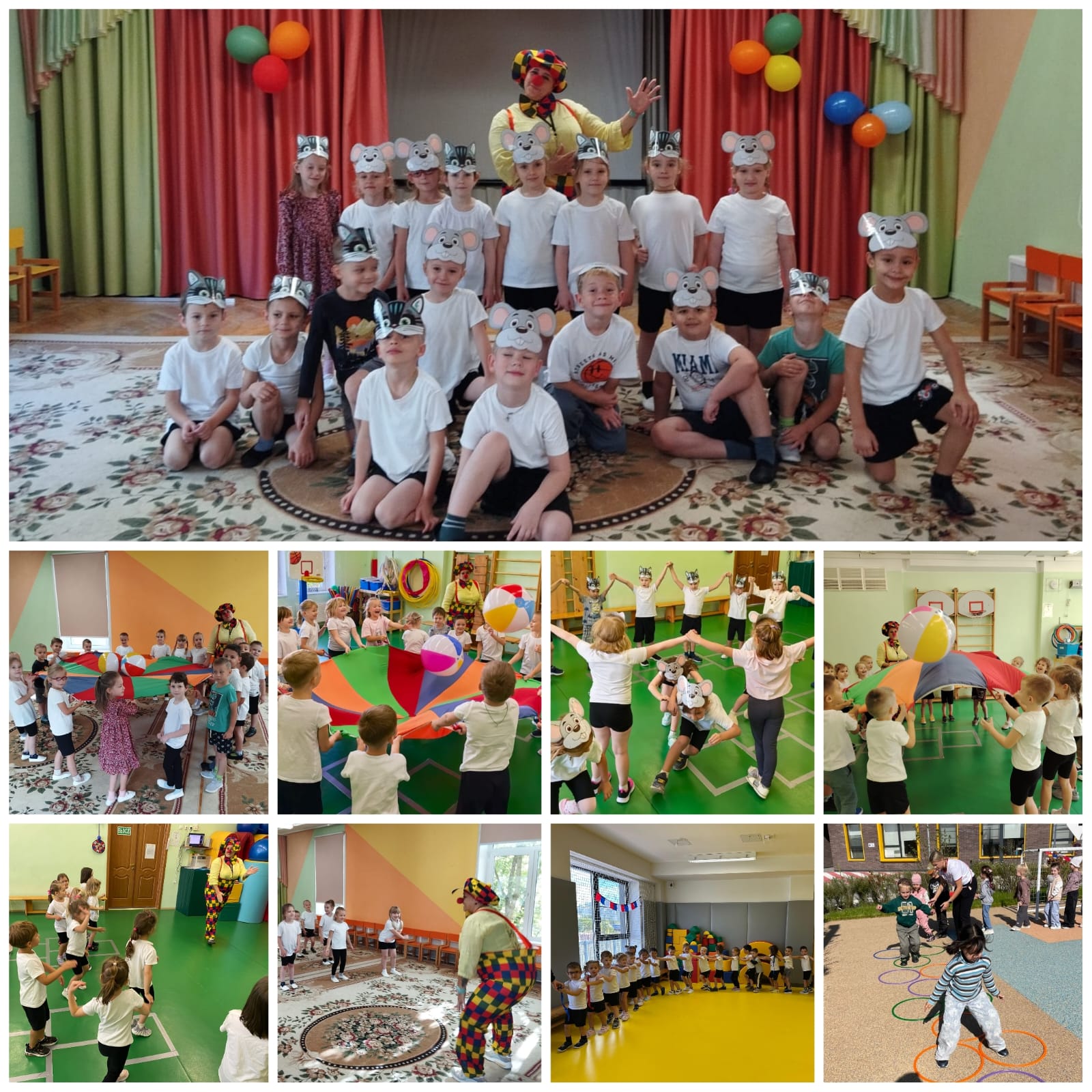 Праздник начался с радостного приветствия детей и неожиданного гостя – веселого клоуна, который сразу поднял настроение всем присутствующим. Дети активно участвовали в четырех увлекательных играх, каждая из которых была направлена на развитие ловкости, внимания, координации и командного духа. Все игры проходили в доброжелательной игровой форме, сопровождались веселой музыкой. Дети смеялись, радовались, поддерживали друг друга и получили массу положительных эмоций.
