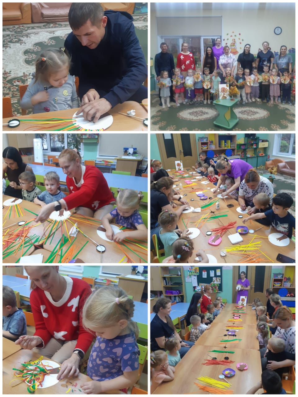 Каждый старательно наклеивал разноцветные листочки (полосочки) на дерево, создавая неповторимую осеннюю композицию.